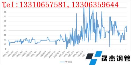 另外,我們再來看一下,港口的PB粉價格和麥克粉價格的價差,這兩個品種在含鐵量上相差不多,同時就是小指標含量有一定的差異,所以之前一直維持一個穩定的價差,但是現在這個價差也出現了明顯的擴張,這表明,在同樣差不多的品質里面,PB粉相對來說更貴了。
