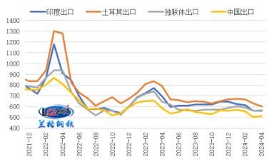目前我國厚壁鋼管出口報價優(yōu)勢仍存。研究中心監(jiān)測數(shù)據(jù)顯示,截至2024年4月11日,印度、土耳其、獨聯(lián)體熱軋卷板出口報價(FOB)分別為560美元/噸、605美元/噸和565美元/噸,中國熱軋卷板出口報價(FOB)為515美元/噸;目前我國熱卷出口報價分別較印度、土耳其、獨聯(lián)體熱卷出口報價低45美元/噸、90美元/噸和50美元/噸(詳見圖4)。