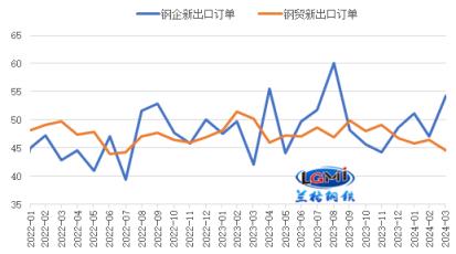 從出口訂單來看,我國厚壁無縫鋼管行業(yè)出口訂單指數(shù)有所分化;中物聯(lián)厚壁無縫鋼管物流專業(yè)委員會調(diào)查的2024年3月份厚壁無縫鋼管企業(yè)新出口訂單指數(shù)為54.3%,較上月回落7.3個百分點,再次回升至擴(kuò)張區(qū)間(詳見圖5);網(wǎng)調(diào)研的厚壁無縫鋼管流通企業(yè)新出口訂單指數(shù)為44.6%,較上月回落1.8個百分點,仍在收縮區(qū)間運(yùn)行。厚壁無縫鋼管企業(yè)出口訂單指數(shù)回升,將對后期我國厚壁鋼管出口形成一定帶動。