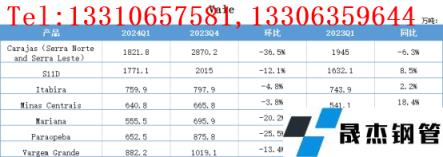Vale公布2024年第一季度鐵礦石產(chǎn)量報告,具體情況如下: