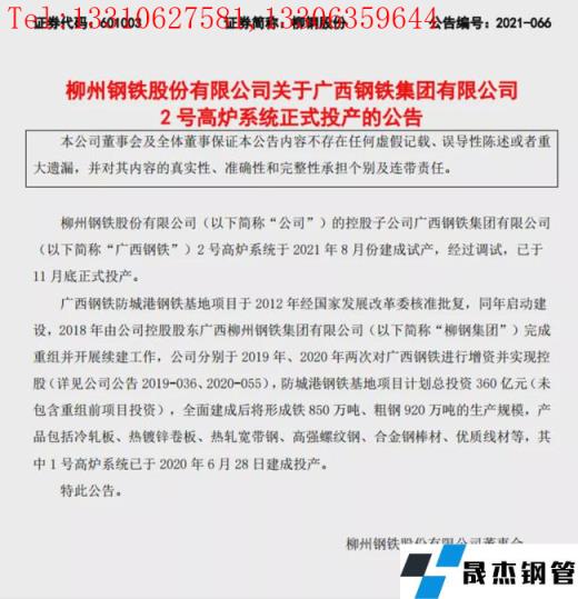 柳鋼股份12月7日晚間公告,控股子公司廣西鋼鐵集團(tuán)有限公司2號高爐系統(tǒng)于2021年8月份建成試產(chǎn),經(jīng)過調(diào)試,已于11月底正式投產(chǎn)。