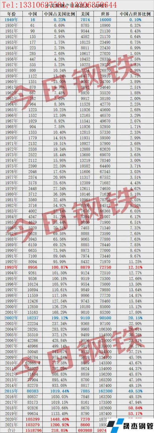 根據以上情況,筆者查閱了世界鋼鐵行業協會、國家統計局以及其他相關渠道的數據信息,收集整理了中國、美國以及世界1949年到2021年粗鋼產量的數據(僅用于示意分析),以此勾勒并呈現中國鋼鐵產業發展的線條!這是中國鋼鐵工業自力更生、趕超先進的歷史,也是中國鋼鐵工業走向世界之巔的記錄!