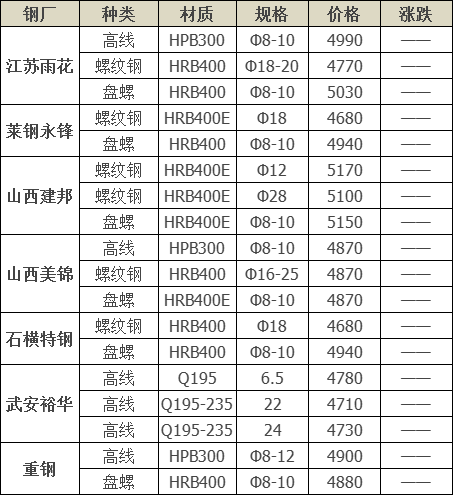 今日鋼廠指導價格穩(wěn)中調整,原料價格略有下降,然近期連續(xù)上漲,冬儲季貿易商冬儲意愿變弱,臨近春節(jié),下游需求不高,市場成交表現不佳,廠商多穩(wěn)價去庫。預計短期鋼廠價格持穩(wěn)偏弱。