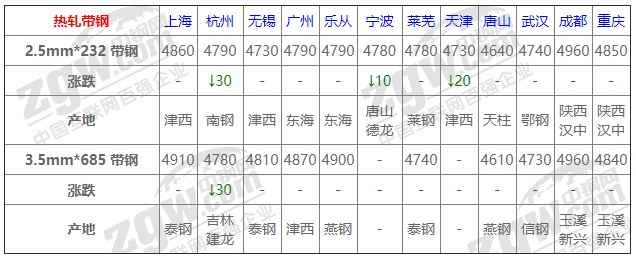 全國10個(gè)主要市場3.5mm*685 帶鋼平均價(jià)格4815元/噸,較上個(gè)交易日下調(diào)5元/噸。