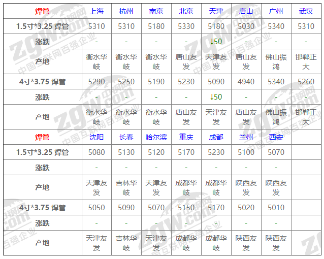 全國15個(gè)主要市場1.5寸*3.25 焊管平均價(jià)格5193元/噸,較上個(gè)交易日下調(diào)3元/噸。