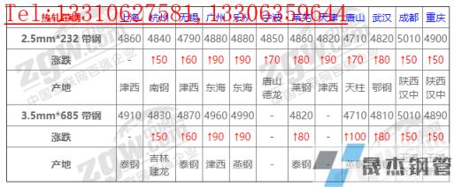 全國12個主要市場2.5mm*232 帶鋼平均價格4852元/噸,較上個交易日上調65元/噸。