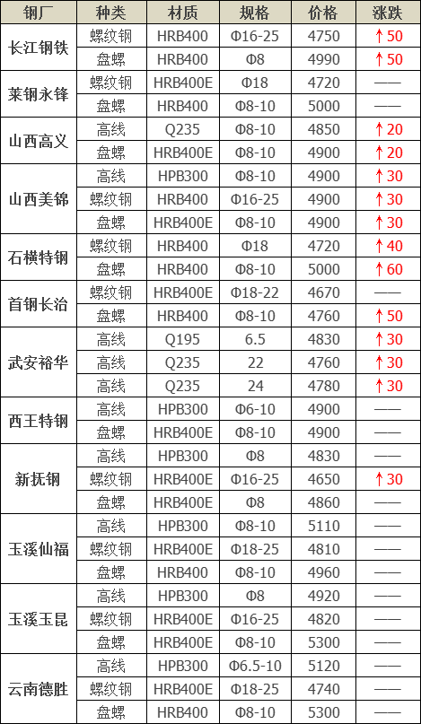 今日鋼廠指導價格穩中向上,期貨偏強震蕩。現貨市場陸續放假休市,臨近年末,終端需求愈發清淡,價格走高商家拿貨意愿不高,成本堅挺下,廠家挺價觀望為主,預計短期鋼廠價格穩中盤整。