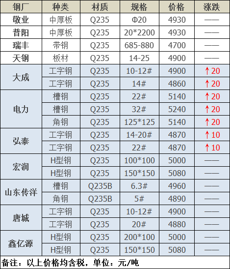 1月20日秦皇島安豐廢鋼價格信息:圓鋼頭沖豆3720模具鋼大-法蘭片、50厚上重型3700大槽鋼大H型鋼火車大梁3620,無油汽車大梁、汽車弓子3500,2厚馬碲鐵3500冷板小料3520三角矽鋼片3520不含稅。
