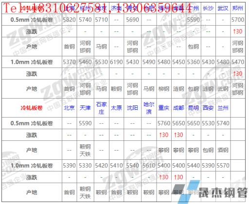 全國23個主要市場1.0mm 冷軋板卷平均價格5480元/噸,較上個交易日上調4元/噸。
