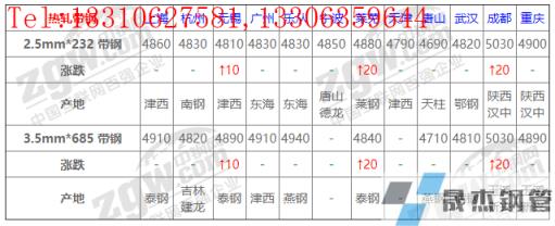 全國12個主要市場2.5mm*232 帶鋼平均價格4843元/噸,較上個交易日上調4元/噸。
