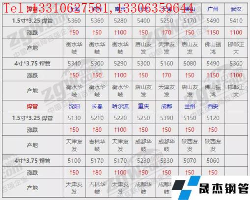 全國15個主要市場4寸*3.75 焊管平均價格5230元/噸,較上個交易日上調70元/噸。