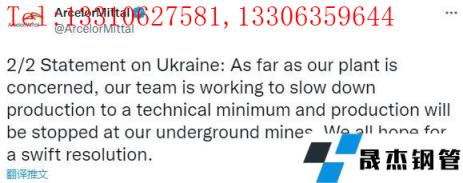 貿(mào)易消息人士稱,烏克蘭的幾家鋼鐵廠,包括管道制造集團(tuán) Interpipe以及位于馬里烏波爾的 Azovstal 和 Ilyich 無縫鋼管廠家,都是 Metinvest 的一部分,已經(jīng)停止生產(chǎn)和運(yùn)輸。Interpipe 向 Platts 證實(shí),它已于2月初停止生產(chǎn)和發(fā)貨。2月24日開始罷工。