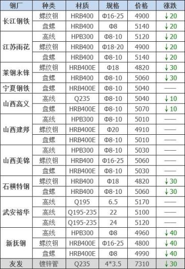 下調7家,占比63.6%,調價幅度10-40元/噸;
