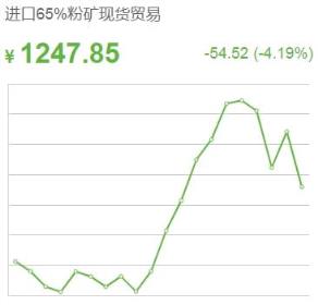 3月15日,進(jìn)口鐵礦石價(jià)格普遍走低,進(jìn)口65%粉礦現(xiàn)貨貿(mào)易價(jià)格跌54.52收于1247.85,進(jìn)口65%粉礦到岸價(jià)格跌5.75收于176.82。