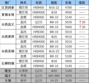 3月22日12點起,河南安陽新普鋼筋切頭、沖豆料型上調20,其它料型不動。重廢10厚3770,6厚3720,工業廢鋼10厚3630,6-10厚3580,4-6厚3470,沖豆3700-3750鋼筋切頭3720-3770。破碎料,矽鋼片,汽車前后橋,鋼筋壓快停收。