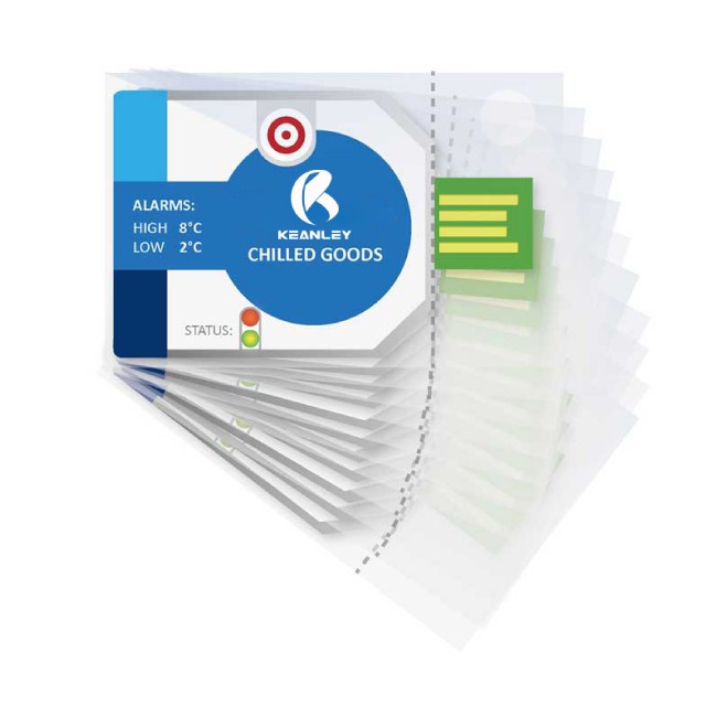 冷藏食品的冷鏈記錄器具有 2°C (35.6°F) 的低警報和 8°C (46.4°F) 的高警報。