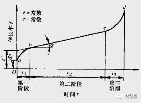 第一階段ab為減速蠕變階段又稱過(guò)渡蠕變階段,這一階段開(kāi)始的蠕變速率很大,隨著時(shí)間延長(zhǎng)蠕變速率逐漸減小,到b點(diǎn)蠕變速率達(dá)到最小值;