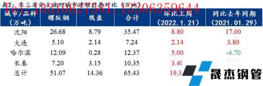 各主流城市分倉庫來看,本周沈陽市場(chǎng)幾大主流倉庫增庫較多;本周大連遠(yuǎn)東鋼材市場(chǎng)新鵬輝到貨較多,其余倉庫新?lián)徜撘苍陉懤m(xù)到貨。吉林省內(nèi)長春兩大主流倉庫現(xiàn)貨庫存也在增加。從無縫鋼管廠家產(chǎn)量及庫存來看,本周區(qū)域內(nèi)樣本無縫鋼管廠家總產(chǎn)量43.1萬噸,較上周增.9萬噸;廠庫總量12.56萬噸,較上周減少1.01萬噸,社庫則大幅度增20.24萬噸;本周無縫鋼管廠家產(chǎn)量增、廠庫降、社庫繼續(xù)大增,主要原因是部分無縫鋼管廠家復(fù)產(chǎn)、產(chǎn)量略有回升,廠庫繼續(xù)前移至市場(chǎng),而貿(mào)易商由于下游無需求幾乎也無成交,預(yù)計(jì)春節(jié)過后區(qū)域內(nèi)社會(huì)庫存將繼續(xù)增加。