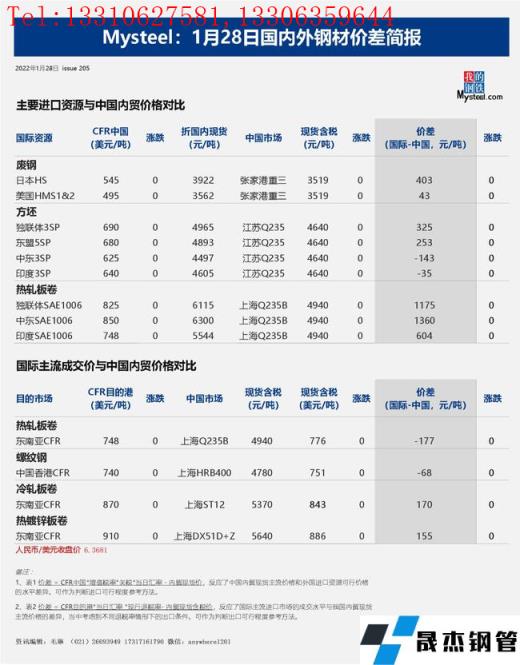 免責聲明:本網站(山東聊城晟杰無縫鋼管廠www.ahcom.com.cn)刊載的“2022年01月28日日報:國內外鋼材_無縫鋼管價差匯總(2022.1.28)”等均源于網絡,版權歸原作者所有,且僅代表原作者觀點,本文所載信息僅供參考。轉載僅為學習與交流之目的,如無意中侵犯您的合法權益,請及時聯系刪除。本網站刊登此篇文章并不意味著本站贊同其觀點或證實其內容的真實性,我們不對其科學性、嚴肅性等作任何形式的保證。如果侵犯了您的版權,請盡快聯系我們予以撤銷,謝謝合作!