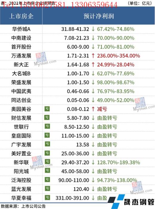 免責聲明:本網站(山東聊城晟杰無縫鋼管廠www.ahcom.com.cn)刊載的“20家房企發布2021年業績預告,過半出現虧損”等均源于網絡,版權歸原作者所有,且僅代表原作者觀點,本文所載信息僅供參考。轉載僅為學習與交流之目的,如無意中侵犯您的合法權益,請及時聯系刪除。本網站刊登此篇文章并不意味著本站贊同其觀點或證實其內容的真實性,我們不對其科學性、嚴肅性等作任何形式的保證。如果侵犯了您的版權,請盡快聯系我們予以撤銷,謝謝合作!