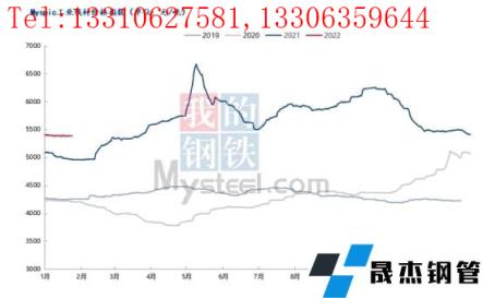 由上圖可以看出,1月工業線材市場價格整體震蕩運行,但不同品種走勢分化,其中全國硬線均價5161元/噸,冷鐓鋼均價5270元/噸、拉絲均價4882元/噸、,分別較上月末下跌26元/噸、下跌48元/噸和上漲58元/噸。本月各品種方面價格品種分化,普優價差出現縮窄,普強優弱格局明顯。從南北價差來看,華南與華北價差30元/噸,價差依舊倒掛嚴重,主要受進口材的原因導致華南市場承壓運行。品種價差來看,目前冷鐓—硬線差109元/噸、硬線-拉絲價差279元/噸,冷鐓—拉絲價差388元/噸,普優價差大幅縮窄,本月成本端大幅上漲,目前無縫厚壁鋼管廠家生產工業線材利潤有所回落,供應方面預計增量有限。