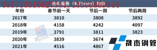 小編匯總近5年春節后兩周全國主要城市13大品種厚壁無縫鋼管均價走勢,以供參考。