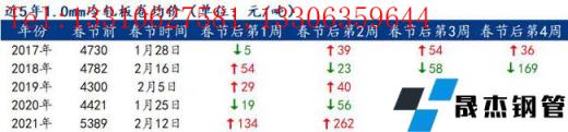 樂從冷軋:據悉市場貿易商大部分到初八開始復工,當前暫時未報價,節前最后一個交易日主流規格報價為5400元/噸,實際成交5370元/噸。春節期間,柳鋼正常生產,市場貿易商表示節前一周開始累庫,累庫時間差不多12-15天左右,按照無縫厚壁鋼管廠家的發貨速度來看,其節后大戶庫存將達到1萬噸以上,總體庫存約增加20萬噸,再加上鞍鋼、首鋼等無縫厚壁鋼管廠家的到貨,節后庫存存在一定壓力,但是較往年庫存壓力有所減少,預計節后樂從冷軋價格仍有上漲空間。