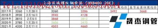 二:近五年上海建筑厚壁無縫鋼管春節均價走勢: