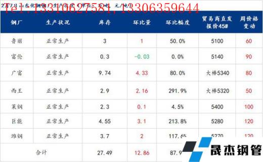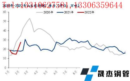 2月7日山東優(yōu)特無縫厚壁鋼管廠家棒材總庫存27.49萬噸,較節(jié)前增加12.86萬噸,增幅88%,較去年春節(jié)后庫存減少3萬噸。