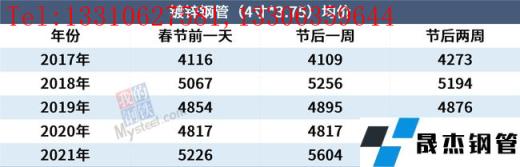 免責聲明:本網站(山東聊城晟杰無縫鋼管廠www.ahcom.com.cn)刊載的“近5年春節前后全國鋼材_無縫鋼管市場走勢”等均源于網絡,版權歸原作者所有,且僅代表原作者觀點,本文所載信息僅供參考。轉載僅為學習與交流之目的,如無意中侵犯您的合法權益,請及時聯系刪除。本網站刊登此篇文章并不意味著本站贊同其觀點或證實其內容的真實性,我們不對其科學性、嚴肅性等作任何形式的保證。如果侵犯了您的版權,請盡快聯系我們予以撤銷,謝謝合作!