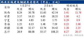 截至到2月6日,據(jù)不完全統(tǒng)計(jì),西北區(qū)域社會(huì)總庫存約在141.42萬噸,與節(jié)前(1月27日)相比,周環(huán)比增加26.44萬噸。分區(qū)域來看,陜西、新疆和甘肅區(qū)域社庫分別增加15.17萬噸、3.53萬噸和5.26萬噸,而寧夏和青海區(qū)域社庫則增幅較少,分別增加1.19萬噸和1.29萬噸。