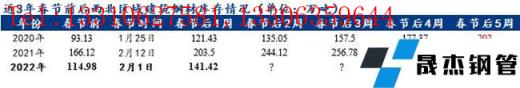 對(duì)比近3年春節(jié)前后西北區(qū)域社庫數(shù)據(jù)來看,今年春節(jié)前累庫不及往年。2021年是近3年以來,西北區(qū)域春節(jié)前社庫量最多一年,社庫量達(dá)166.12萬噸,而今年春節(jié)前西北區(qū)域社庫量在114.98萬噸,較去年減少51.14萬噸。再對(duì)比春節(jié)后社庫量來看,西北區(qū)域需求多集中在2月底或3月中上旬釋放,疊加春節(jié)假期影響市場(chǎng)銷售周期,因此往年春節(jié)后西北區(qū)域建材社庫基本上處于快速累積,春節(jié)后第一周建材社庫平均增幅在25%左右。從趨勢(shì)來看,預(yù)計(jì)春節(jié)后第四周或第五周將達(dá)到全年社庫峰值。