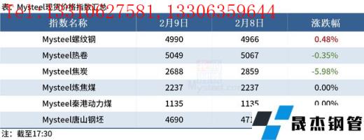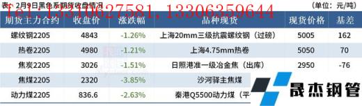 免責聲明:本網站(山東聊城晟杰無縫鋼管廠www.ahcom.com.cn)刊載的“2022年02月09日晚餐:黑色期貨全線跳水,鋼坯利潤升至345元”等均源于網絡,版權歸原作者所有,且僅代表原作者觀點,本文所載信息僅供參考。轉載僅為學習與交流之目的,如無意中侵犯您的合法權益,請及時聯系刪除。本網站刊登此篇文章并不意味著本站贊同其觀點或證實其內容的真實性,我們不對其科學性、嚴肅性等作任何形式的保證。如果侵犯了您的版權,請盡快聯系我們予以撤銷,謝謝合作!