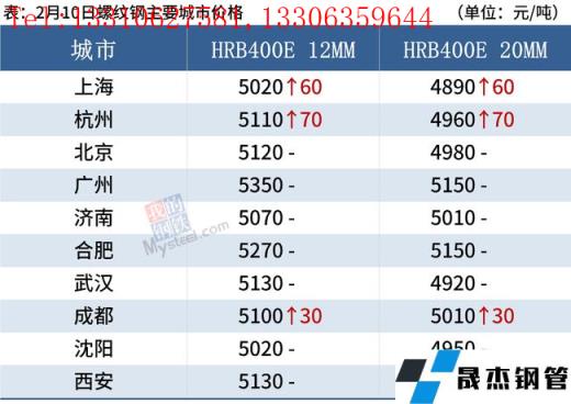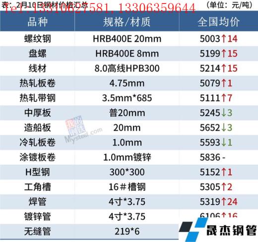 建筑厚壁無縫鋼管:2月10日,全國31個主要城市20mm三級抗震螺紋鋼均價5003元/噸,較上個交易日上漲14元/噸。本周建材產量受春節影響小幅回落;廠庫、社庫大幅增加,表觀消費小幅上升。短期來看,目前市場實際需求并未啟動,現貨價格多受情緒面驅動上漲,支撐力有限。因此預計短期現貨市場在情緒面驅動下價格仍有拉高的可能。