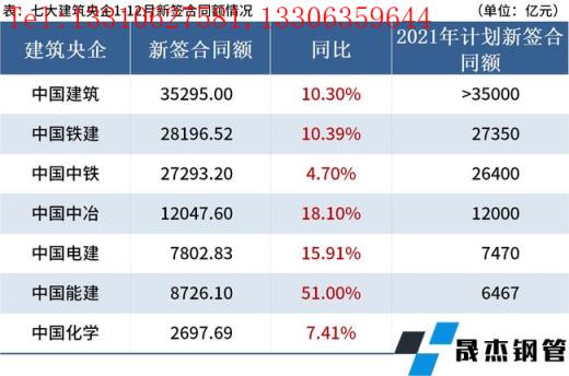 免責聲明:本網站(山東聊城晟杰無縫鋼管廠www.ahcom.com.cn)刊載的“7家建筑央企2021年新簽合同總額超12萬億元,同比增長12%”等均源于網絡,版權歸原作者所有,且僅代表原作者觀點,本文所載信息僅供參考。轉載僅為學習與交流之目的,如無意中侵犯您的合法權益,請及時聯系刪除。本網站刊登此篇文章并不意味著本站贊同其觀點或證實其內容的真實性,我們不對其科學性、嚴肅性等作任何形式的保證。如果侵犯了您的版權,請盡快聯系我們予以撤銷,謝謝合作!
