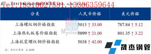 分地區(qū)方面,上海螺紋鋼價(jià)格指數(shù)5013,上漲33.0;上海熱軋板卷價(jià)格指數(shù)5099,上漲21.0。(單位:元/噸)