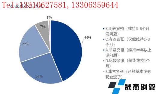 6、企業現金流偏寬松。本次調研樣本企業中現金流比較充裕和非常充裕的占比66%,有些緊張的占比26%;比較緊張和非常緊張的占比8%。