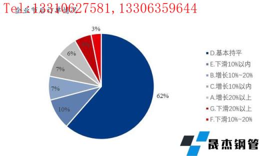 3、訂單方面穩中有漲。與去年同期相比,企業的訂單有增長的占比20%,其中增長10%以內的占比7%,增長10%以上的占比13%;基本持平的占比62%;當前所在企業的訂單狀況有所下滑的占比18%。