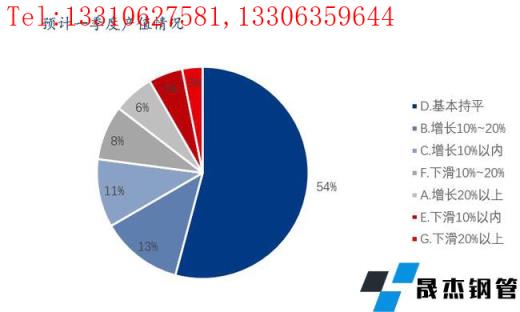 本次調研樣本企業中與去年同期相比,預計企業一季度的產值有所增長的占比30%,其中增長10%以上的和增長10%以內的分別占比19%和11%;與去年同期相比,預計企業一季度的產值基本持平的占比54%;與去年同期相比,預計企業一季度的產值有所下滑的占比16%。