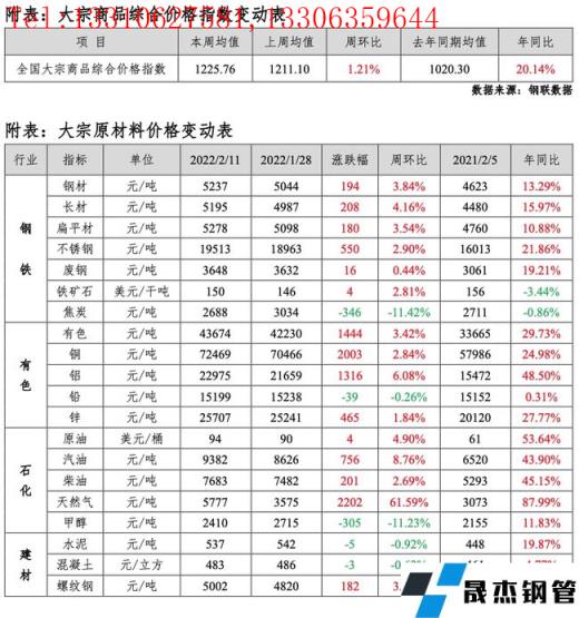 免責聲明:本網(wǎng)站(山東聊城晟杰無縫鋼管廠www.ahcom.com.cn)刊載的“MRI:大宗原材料價格周報(2月7日-2月11日)”等均源于網(wǎng)絡(luò),版權(quán)歸原作者所有,且僅代表原作者觀點,本文所載信息僅供參考。轉(zhuǎn)載僅為學習與交流之目的,如無意中侵犯您的合法權(quán)益,請及時聯(lián)系刪除。本網(wǎng)站刊登此篇文章并不意味著本站贊同其觀點或證實其內(nèi)容的真實性,我們不對其科學性、嚴肅性等作任何形式的保證。如果侵犯了您的版權(quán),請盡快聯(lián)系我們予以撤銷,謝謝合作!