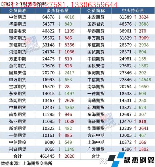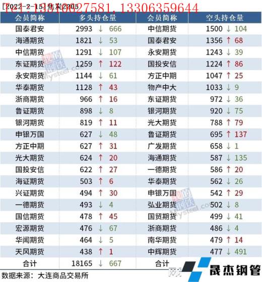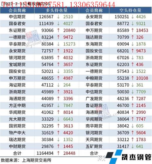截至2月15日收盤,螺紋鋼2205收4728元/噸,跌2.76%;熱卷2205收4843元/噸,跌2.69%;鐵礦石2205收699元/噸,跌9.98%。