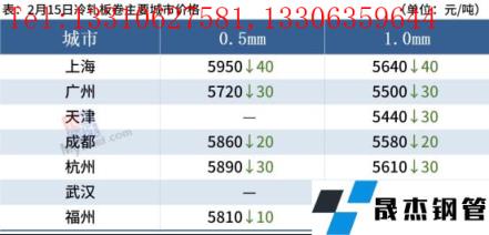 冷軋板卷:2月15日,全國24個主要城市1.0mm冷卷均價5589元/噸,較上個交易日下跌22元/噸。黑色系期貨偏弱運行,現貨市場報價較為混亂。成交方面,下游企業觀望情緒較為濃厚,再加上今天為元宵節,華東地區部分貿易商下午放假,出貨時間僅僅只有半天,今日整體成交較上周有所減量。綜合來看,故預計16日國內冷軋板卷價格或將穩中偏弱運行。