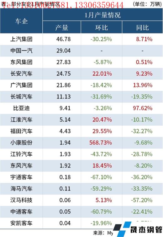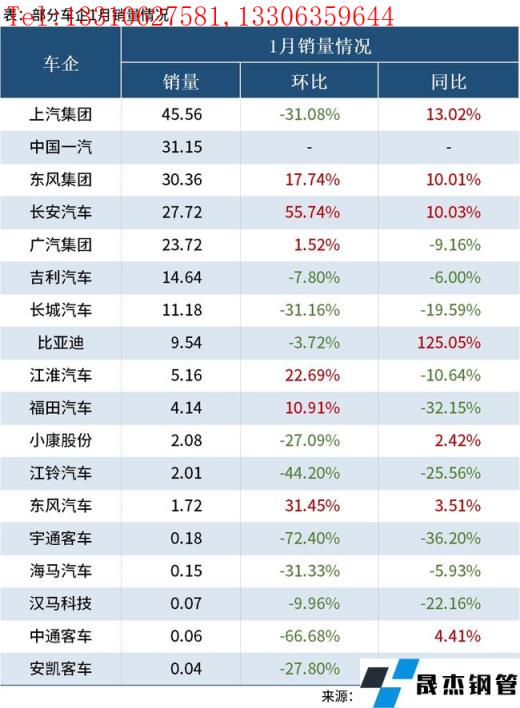 免責聲明:本網站(山東聊城晟杰無縫鋼管廠www.ahcom.com.cn)刊載的“1月我國汽車產銷降幅明顯,多數車企呈現雙位數下跌”等均源于網絡,版權歸原作者所有,且僅代表原作者觀點,本文所載信息僅供參考。轉載僅為學習與交流之目的,如無意中侵犯您的合法權益,請及時聯系刪除。本網站刊登此篇文章并不意味著本站贊同其觀點或證實其內容的真實性,我們不對其科學性、嚴肅性等作任何形式的保證。如果侵犯了您的版權,請盡快聯系我們予以撤銷,謝謝合作!
