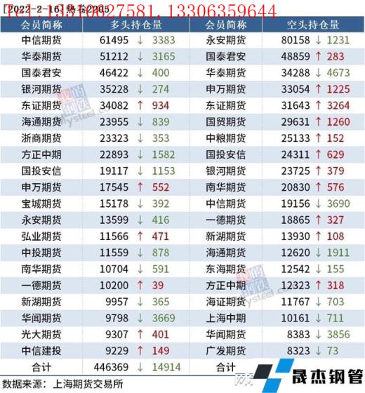 截至2月16日收盤,螺紋鋼2205收4832元/噸,漲1.85%;熱卷2205收4939元/噸,漲1.46%;鐵礦石2205收720元/噸,跌1.1%。