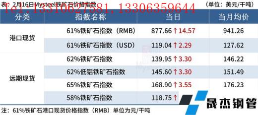 ◎ 2月16日,全國(guó)主港鐵礦石成交135萬(wàn)噸,環(huán)比增214%;237家主流貿(mào)易商建材成交8.51萬(wàn)噸,環(huán)比增82.3%。