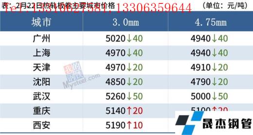 ②、全國24個主要城市4.75mm熱軋板卷均價5035元/噸,較上個交易日上漲4元/噸。預計23日熱軋板卷價格或將繼續震蕩趨弱為主。