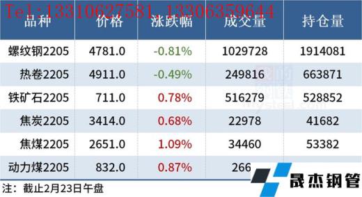 免責聲明:本網站(山東聊城晟杰無縫鋼管廠www.ahcom.com.cn)刊載的“2022年02月23日午報:鋼價多數下跌,黑色期貨低開高走”等均源于網絡,版權歸原作者所有,且僅代表原作者觀點,本文所載信息僅供參考。轉載僅為學習與交流之目的,如無意中侵犯您的合法權益,請及時聯系刪除。本網站刊登此篇文章并不意味著本站贊同其觀點或證實其內容的真實性,我們不對其科學性、嚴肅性等作任何形式的保證。如果侵犯了您的版權,請盡快聯系我們予以撤銷,謝謝合作!