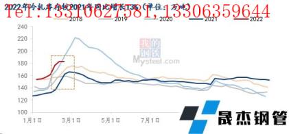 認(rèn)為冷軋基本面對熱卷價格影響偏小,主要在于;1、由于考慮到訂單、排產(chǎn)、后續(xù)市場情況等多種因素,無縫厚壁鋼管廠家生產(chǎn)計(jì)劃需提前制定,因此無縫厚壁鋼管廠家不會輕易減少產(chǎn)量。我們分析歷史情況發(fā)現(xiàn),在虧損較大后,冷軋產(chǎn)量才會有明顯的下降。目前冷軋無縫厚壁鋼管廠家還有200元/噸左右的利潤,加上3月訂單接近飽和,所以我們預(yù)計(jì)短期冷軋無縫厚壁鋼管廠家不會減產(chǎn);2、去年同期(2021年2月),由于汽車、出口需求旺盛,冷軋缺貨,庫存相比其他品種偏低,造成今年庫存同比上漲較為明顯;3、熱軋價格主要取決于自身的基本面,在目前總庫存絕對值處于低位的情況下,熱軋本身基本面有較強(qiáng)支撐,較難受冷軋影響出現(xiàn)價格崩塌。