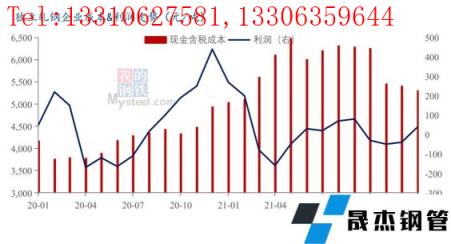 長流程無縫厚壁鋼管廠家,以鞍鋼為例,鞍鋼2月份結(jié)算價,到上海碼頭的實(shí)際成本分別是5430元/噸,入庫費(fèi)用加15元/噸;短流程無縫厚壁鋼管廠家而言, 鞍鋼天鐵出臺1月份結(jié)算價,減完最大優(yōu)惠,出廠含稅成本為 5300元/噸,截至2月18日上海市場鞍鋼1.0mm現(xiàn)貨價格在5530元/噸左右,因此長流程無縫厚壁鋼管廠家利潤約185元/噸,短流程利潤330元/噸。