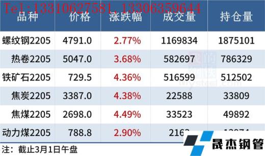 免責聲明:本網站(山東聊城晟杰無縫鋼管廠www.ahcom.com.cn)刊載的“2022年03月01日午報:鋼價普遍上漲,鐵礦石和焦炭期貨漲逾4%”等均源于網絡,版權歸原作者所有,且僅代表原作者觀點,本文所載信息僅供參考。轉載僅為學習與交流之目的,如無意中侵犯您的合法權益,請及時聯系刪除。本網站刊登此篇文章并不意味著本站贊同其觀點或證實其內容的真實性,我們不對其科學性、嚴肅性等作任何形式的保證。如果侵犯了您的版權,請盡快聯系我們予以撤銷,謝謝合作!